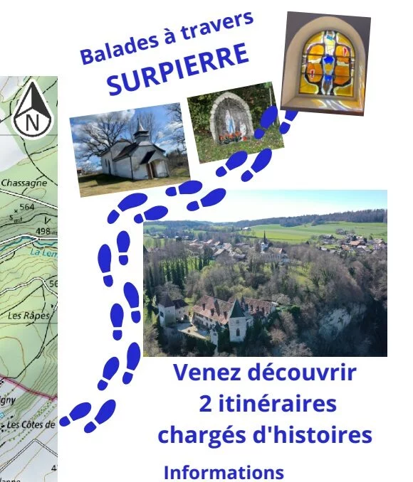 En ouvrant le lien « Plaquette balade à travers Surpierre » (en français ou en allemand), vous découvrirez 2 propositions de parcours à suivre.
